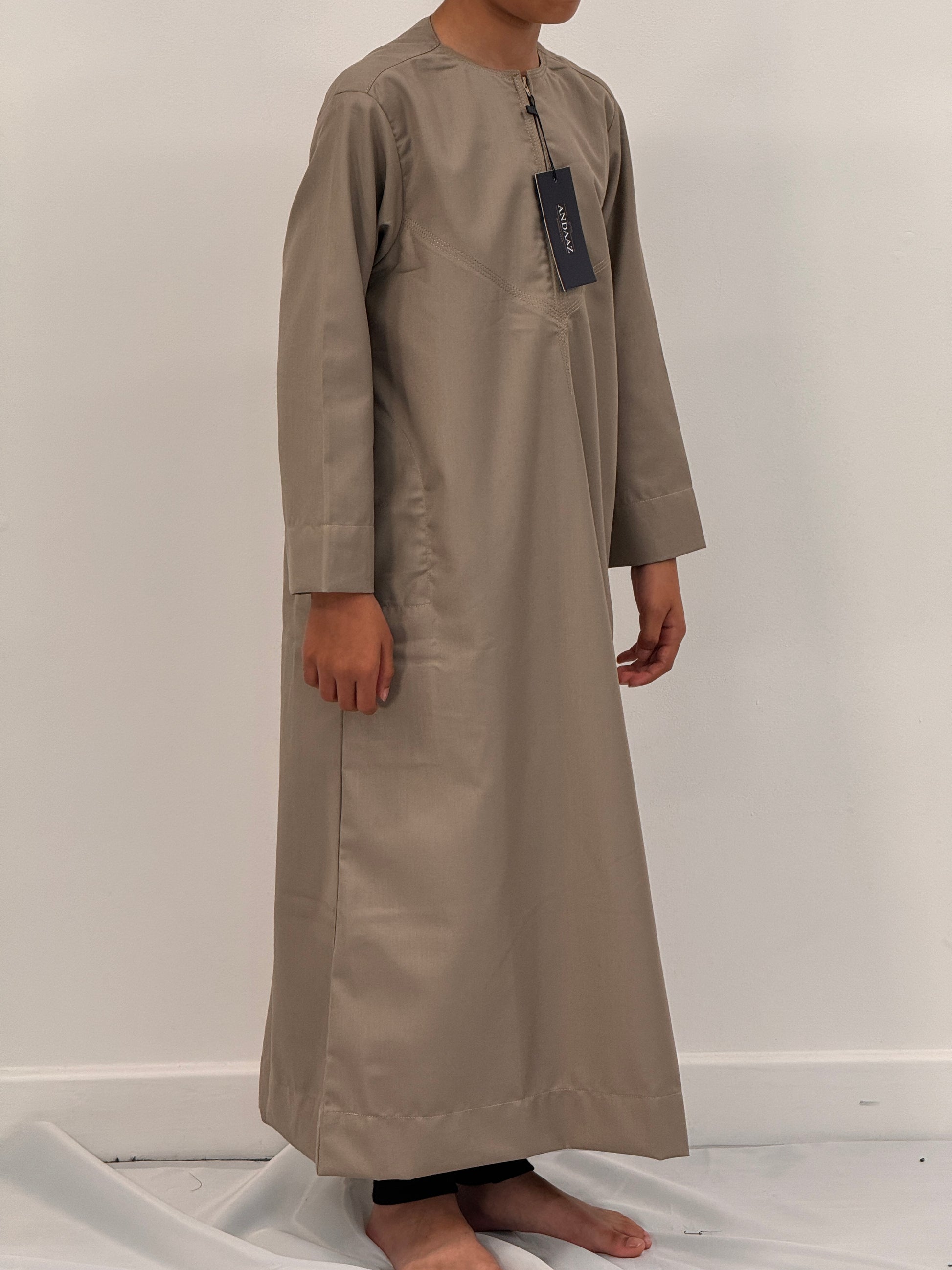 Introducing our Boys Hadi thobe, the perfect addition to your young ones Islamic clothing collection. Made from a high-quality cotton mix fabric, this thobe is not only easy to iron but also incredibly soft and comfortable to wear. The meticulous stitching and expert embroidery make this thobe a truly stand-out piece. Available in a wide range of colours and sizes, you're sure to find the perfect fit for your personal style. We also offer this Hadi thobe in Men's sizes. Whether you're attending a special event or simply want to elevate your everyday wardrobe, this thobe is the perfect choice for any occasion.