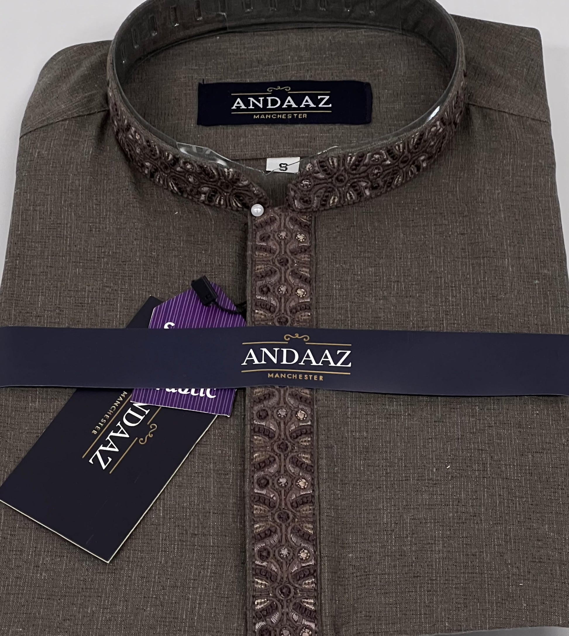 Introducing our Men's Shalwar Kameez with placket embroidery the perfect addition to any man's wardrobe. Made with supreme wash and wear fabric, this ensemble is not only stylish but also incredibly convenient. The kameez features side pockets, making it a practical choice for everyday wear. The plain shalwar complete the look for a sophisticated appearance. Comfortable and versatile, this men's shalwar kameez is a must-have staple for any wardrobe.